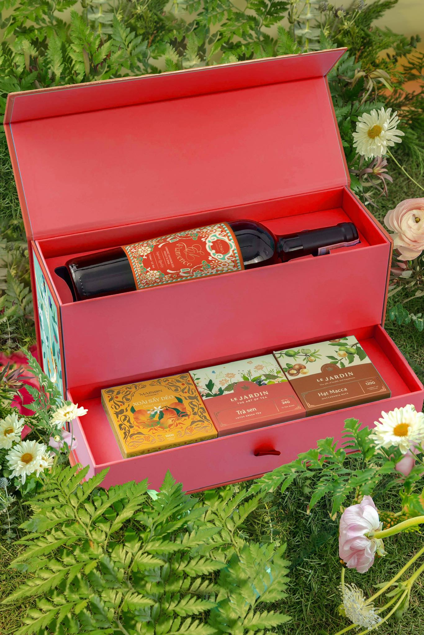 Từng chi tiết trong hộp quà – từ cách sắp xếp sản phẩm, kích thước hộp, đến cảm giác khi mở nắp – đều được cân nhắc kỹ lưỡng để phù hợp với tiêu chuẩn quà biếu doanh nghiệp.