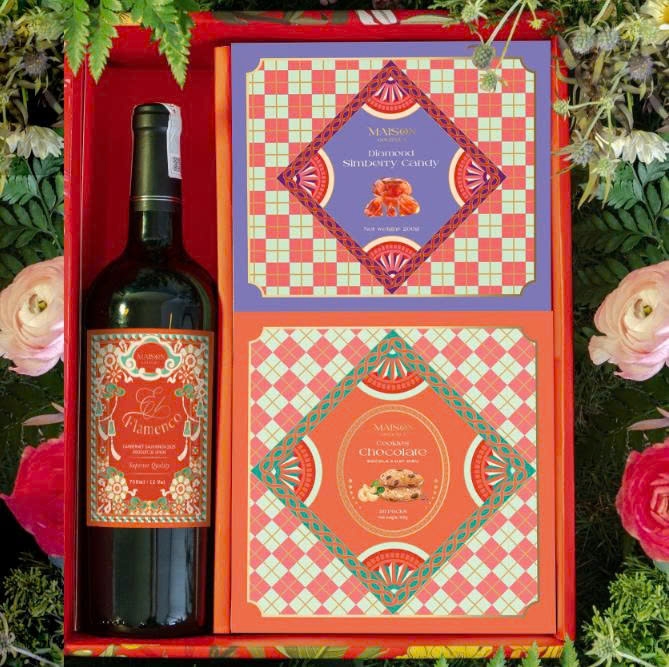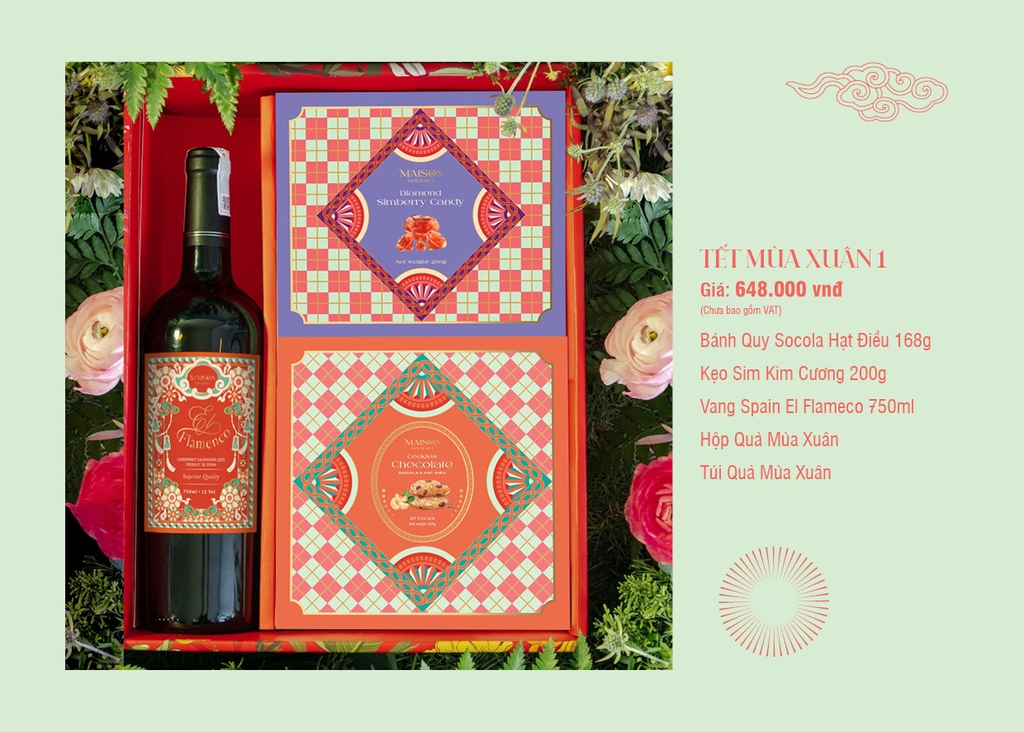 Set Quà Tết Mùa Xuân 1 là lựa chọn quà biếu Tết 2026 tinh tế dành cho doanh nghiệp và gia đình. Thiết kế hộp mang phong cách mùa xuân, kết hợp rượu vang Spain El Flamenco 750ml cùng các loại bánh kẹo premium như Bánh Quy Socola Hạt Điều và Kẹo Sim Kim Cương. Bộ quà mang ý nghĩa sung túc – ngọt lành – may mắn đầu năm, phù hợp làm quà tặng khách hàng, đối tác, nhân viên hoặc biếu họ hàng.
