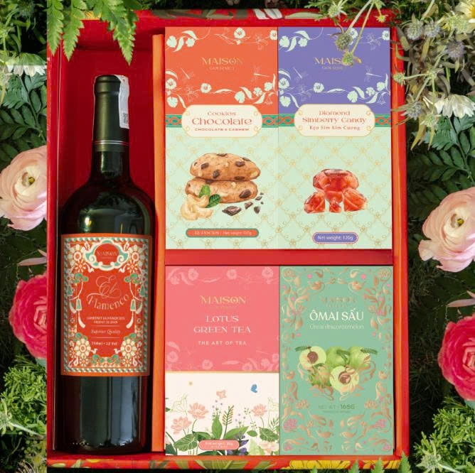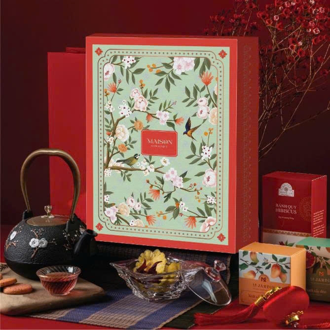 Set Quà Tết Mùa Xuân 3 là phiên bản đầy đủ và cao cấp nhất trong bộ sưu tập Quà Tết 2026 Maison. Hộp quà sở hữu thiết kế hoa xuân tinh xảo, kết hợp rượu vang Spain El Flamenco cùng các món bánh kẹo, ô mai, trà sen phù hợp truyền thống Tết Việt. Đây là lựa chọn lý tưởng cho doanh nghiệp biếu tặng đối tác lớn, khách hàng quan trọng hoặc làm quà sang trọng gửi đến gia đình, người thân trong dịp đầu năm.