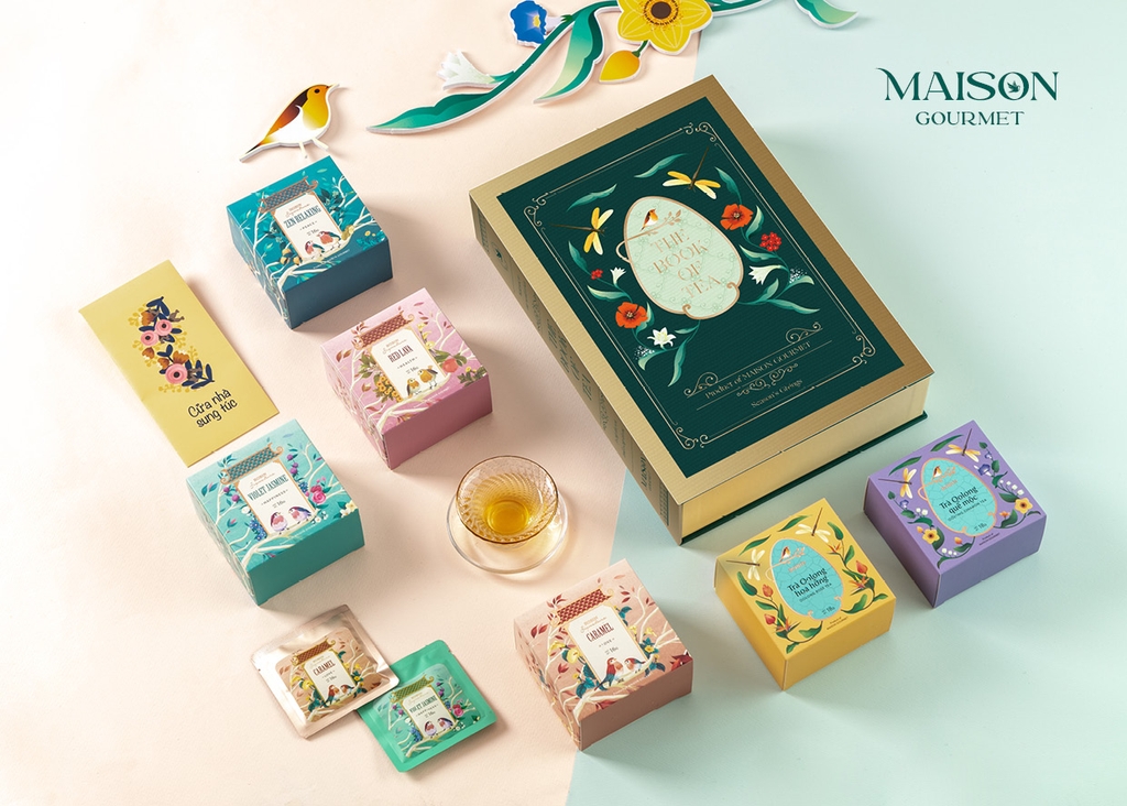 Bộ sản phẩm được thiết kế theo phong cách dân gian đương đại với hình ảnh chú chim Robin là chủ đạo kết hợp cùng những sắc màu rực rỡ của mùa xuân.