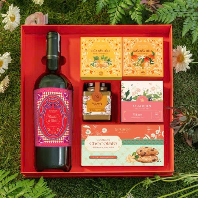 Hộp Quà Tết Sắc Xuân 4 là set quà cao cấp được Maison Gourmet thiết kế dành riêng cho mùa Tết 2026, mang theo thông điệp may mắn – thịnh vượng – sung túc. Với gam màu đỏ rực rỡ kết hợp họa tiết nghệ thuật tinh tế, hộp quà thể hiện trọn vẹn tinh thần Tết truyền thống Việt Nam.